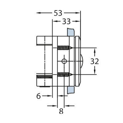 Chalet MS-Anschlagtürband, eckige Form, Glas-Glas 180°, unteres Band DIN rechts